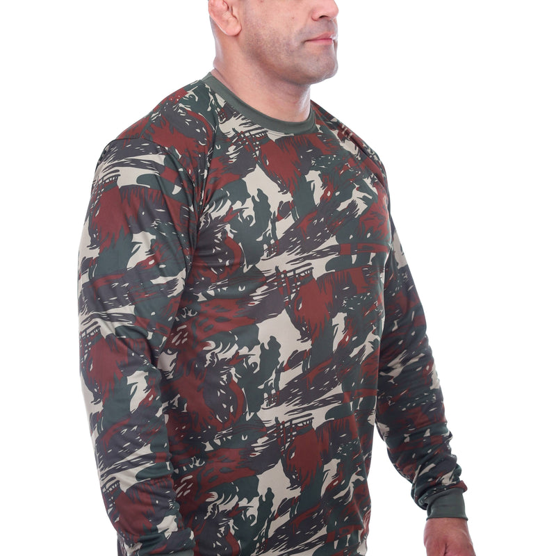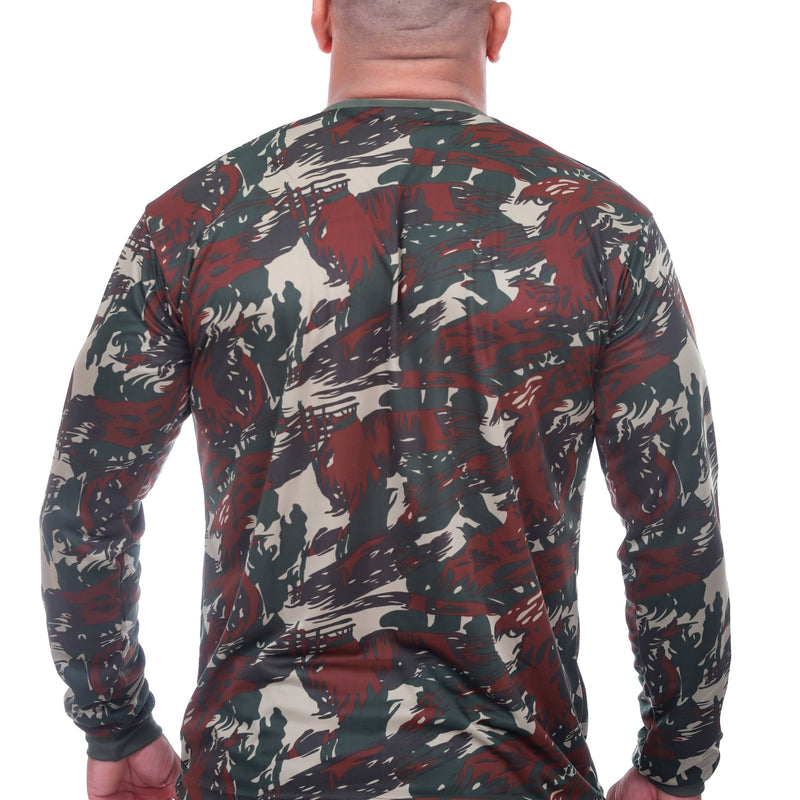 O equipamento que você veste por baixo da farda, do colete ou durante o treinamento físico é tão crucial quanto o equipamento que você veste por fora. A Camiseta Manga Longa Dry-Fit é a sua segunda pele tática, projetada para quem vive em movimento.
