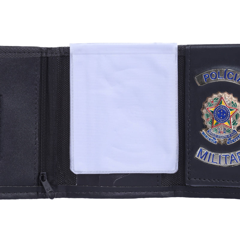 Desenvolvida em corvino. Possui espaço para armazenar dinheiro, cartões de visita, cartões de crédito, moedas e documentos, tudo de forma separada e organizada para obter maior praticidade no dia a dia. Contém o símbolo da república que pode ser usado em todo território brasileiro, trazendo consigo o orgulho de ser um policial militar.
