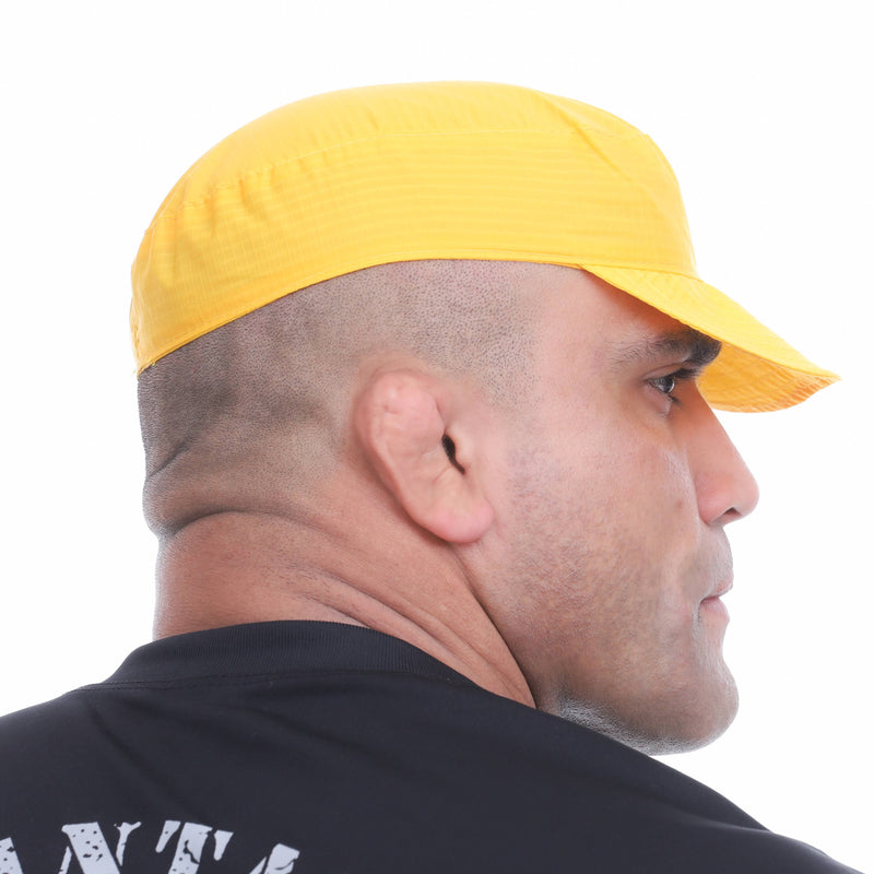 Com o melhor tecido nylon e forro duplo, o gorro amarelo da Camuflados Company oferece alta visibilidade e aquecimento.